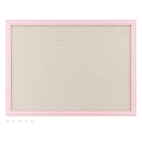 Navaris Tavla Tyg 58 x 43 cm - Hängande anslagstavla med träram MDF Rosa - Tavla med 6 x stift - Memo Board-stift - Linne