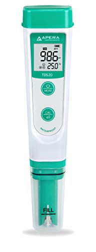 Apera Instruments TDS20 TDS-meter, digital mätare med temperaturdisplay (1% noggrannhet, ±0,5 °C, vattentät, ATC, bärväska)