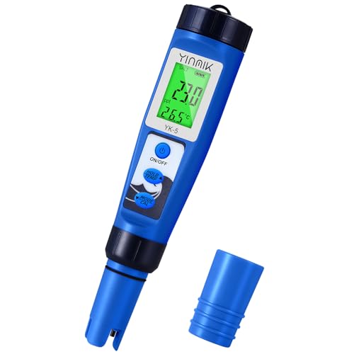 YINMIK PH och salttestare, PPT och pH-mätare för saltpool, TDS EC Salinity pH 5 i 1 testare för akvarium, dricksvatten, hydroponi, saltvatten, SPA, bryggning, YK-5EU