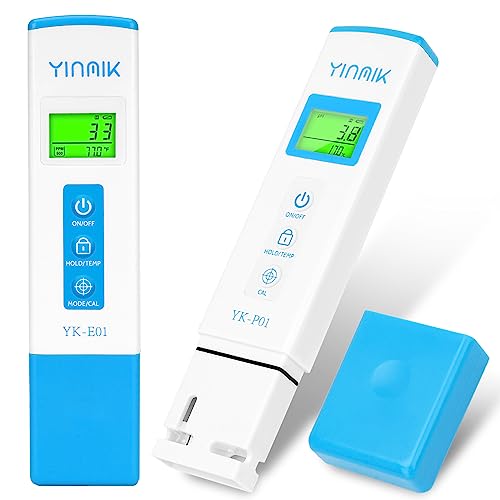 YINMIK 4 i 1 EC-pH-mätare, EC TDS och temperatur digital pH-mätare, pH EC vattenkvalitetstestare, professionell PPM-penna för SPA, dricksvatten, akvarium, hydroponics, vin