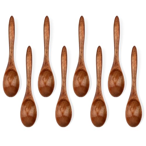 Jeffdad 8 st små träskedar, 14 cm honungssked för te, träskedar för att äta, miniträ serveringsskedar för kaffe te burk smaktillsats