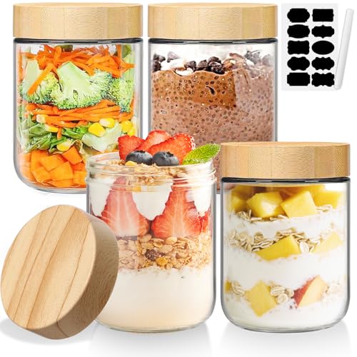 Glasburkar med lock över natten havre burk glas förvaringsburkar för sylt söt yoghurt varm choklad betningsburkar glas matförvaringsbehållare för te kaffe socker kök konserveringsburkar 450 ml – set