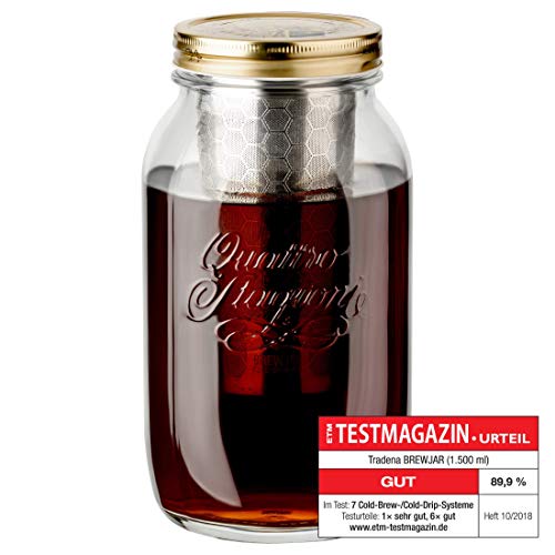 BREWJAR Kallt bryggt burk XL, burk med dubbelskiktsfilter för kallt bryggt kaffe och te (1 500 ml)