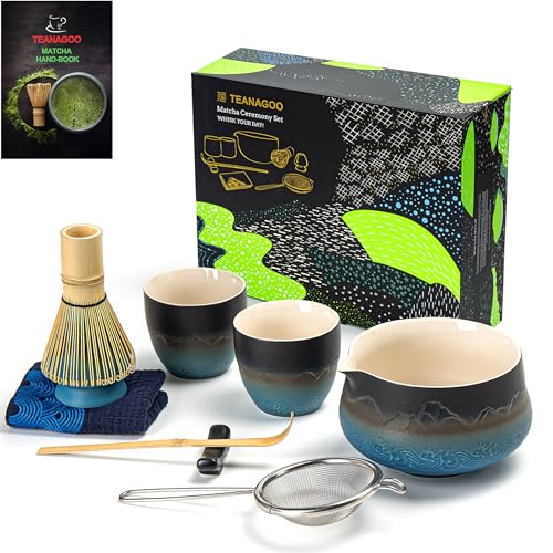 TEANAGOO Matcha Set Matcha Vis Matcha Bowl med pip Shovel Matcha Visp Hållare Te Preparation Set. Japansk teservis, 7 stycken, + 2 koppar (5.6 oz), S33, gradient