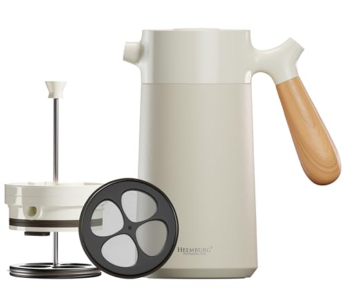 HEEMBURG French Coffee Press 1L – Högkvalitativ termos i rostfritt stål med extra filter | Dubbelväggig isolerad kaffepress för perfekt kaffe och te