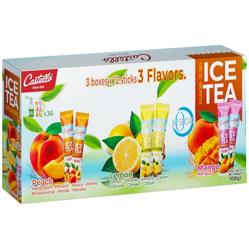 Castello since 1907 Iste (Ice Tea - Iced Tea) Zero i Påsar | 3-pack med 3 Smaker: Persika, Citron & Mango | Totalt 36 Påsar | Noll Kalorier, Sockerfritt, Utan Aspartam