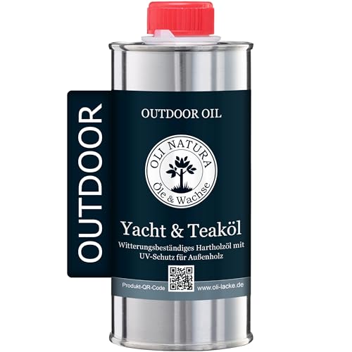 OLI-NATURA Yacht & teakolja – träolja för utomhusbruk – 250 ml, teak – premium linolja med skydd mot UV-strålning, vittring, förtöjning och korrosion – lämplig för nästan alla typer av trä