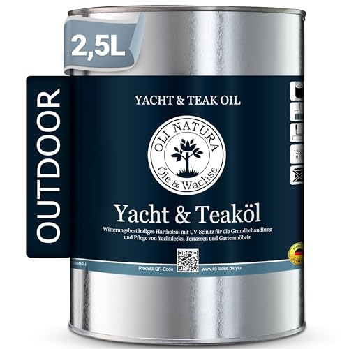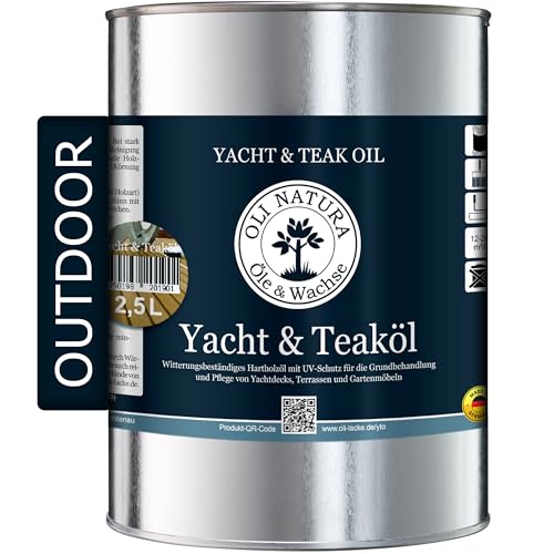 OLI-NATURA Yacht & teakolja 2,5 liter – premium UV-skyddande, djupverkande träolja för utomhusbruk, lämplig för akacia, ek, douglasia och mer, färg: Teak