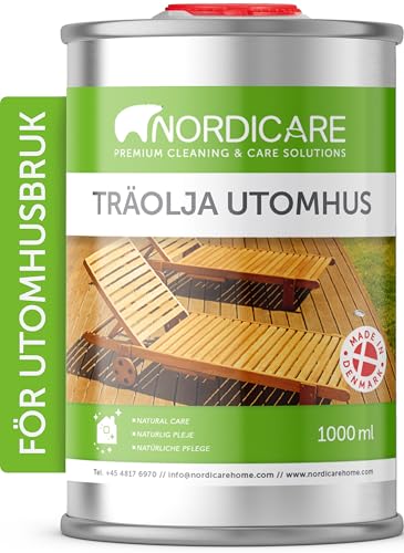 Nordicare Träolja för utomhusbruk [1L] för lärk, ek, teak eller akaciaträ I Träskyddande olja för utomhusbruk, Teakolja för trädgårdsmöbler, olja för trävård, Outdoor Oil
