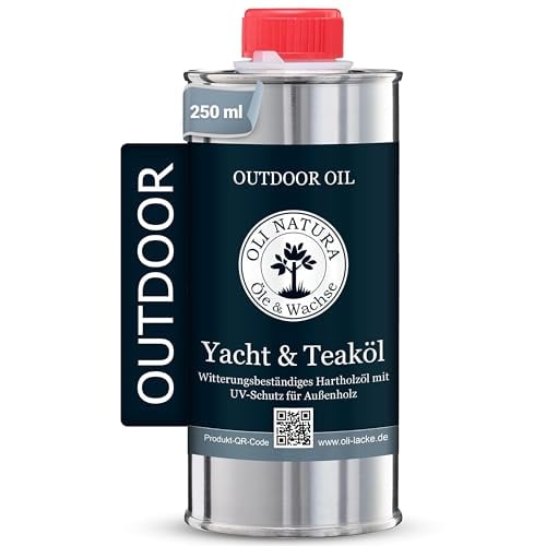 OLI-NATURA Yacht & teakolja – träolja för utomhusbruk – 250 ml, natur – premium linolja med skydd mot UV-strålning, vittring, försök och korrosion – lämplig för nästan alla typer av trä