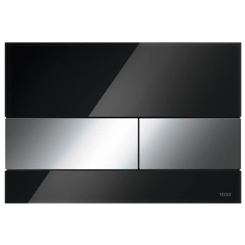 Spolknapp Tece Square Glas Svart/Blankförkromad