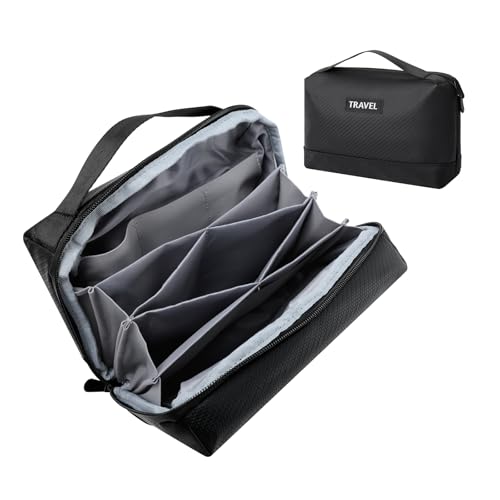 Romon Kabelväska Organizer väska, kabelväska Tech Pouch universal kabelorganiserare väska, resekabel arrangör dubbelskikt resa elektronik tillbehör väska för USB laddningskabel powerbank, svart,