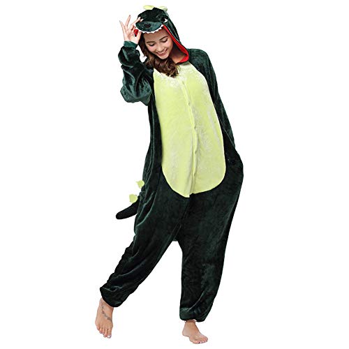 Onesie vuxna pyjamas kvinnor varma nattkläder hemkläder dinosaurie söm enhörning djur tecknad lekdräkt flanell pyjamas overall, Grön dinosaurie, XL