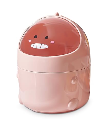 Yoxovo Mini papperskorg med lock, dinosaurie söt tecknad bordsoptunna, söt papperskorg liten, Kawaii dekoration, förvaringslåda, för kontor, barnrum, toalettbord, vardagsrum rosa
