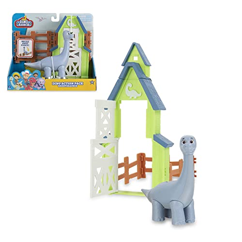 Dino Ranch Dino Action Pack Brontosaurus, tecknad serie, leksak med en dinosaurie och en gårdsranch, samlarobjekt, 3 olika modeller, barn 4 år, berömd (DNA05300)