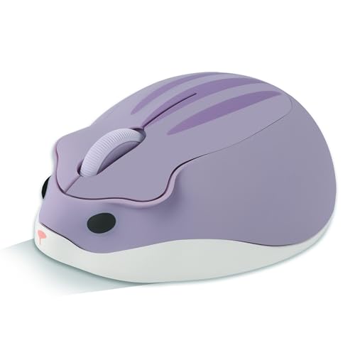 Trådlös mus söt tecknad hamster form mus bärbar resa 2,4 GHz 1 200 DPI optisk sladdlös mus med USB-mottagare tyst kompakt möss för bärbar dator PC dator Mac för barn gåva, lila
