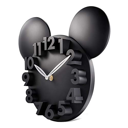 Lafocuse Söt 32x28x5cm Tecknad Mus Svart Väggklocka för Barn med Stora 3D-siffror Väggur Dekoration för Barnrum Sovrum Klassrum Barnkammare