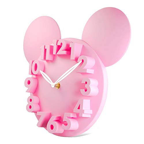 Lafocuse Söt 32x28x5cm Tecknad Mus Rosa Väggklocka för Barn Flickor med Stora 3D-siffror Väggur Dekoration för Barnrum Sovrum Klassrum Barnkammare