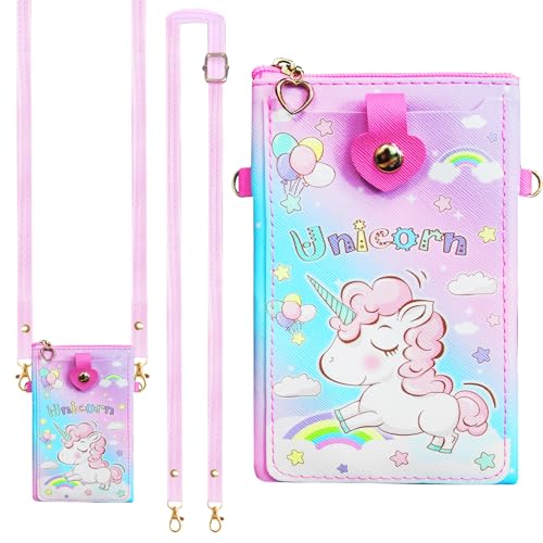 LUKIUP barnplånbok, miniplånbok, bröstpåse flicka, trippel vikt plånbok, med kardborreband, dragsko, sedelfack och myntfack visningsfönster, Tecknad enhörning, M, Modern