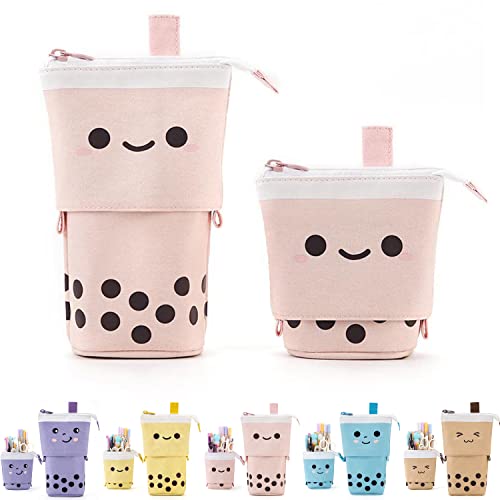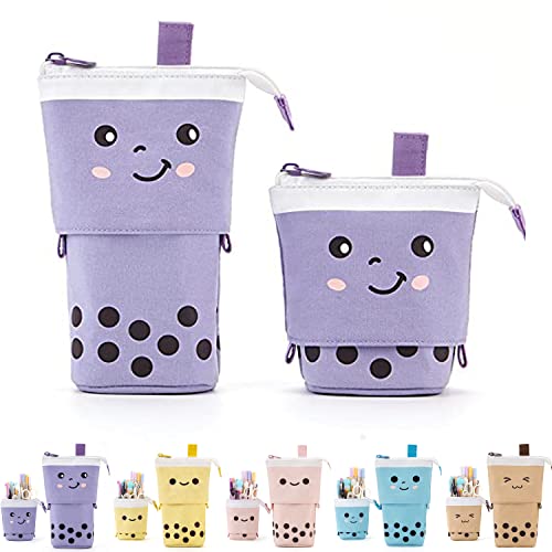 Pennfodral flicka dragkedja 2-i-1 tecknad katt pennfodral och pennfodral infällbart stativ pennhållare tonåring, student teleskopisk pennfodral, taro mjölk te, Visitkortshållare