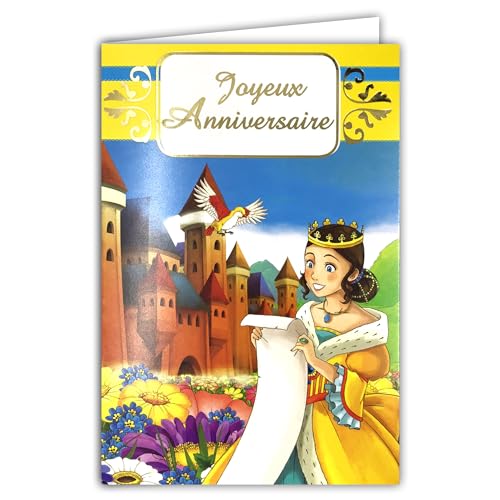 Grattis på födelsedagen kort flicka prinsessa drottning slott manga kuvert12 x 17,5 cm papegoja blommor kostym förklädnad illustration ungdom tecknad 67-1055-A