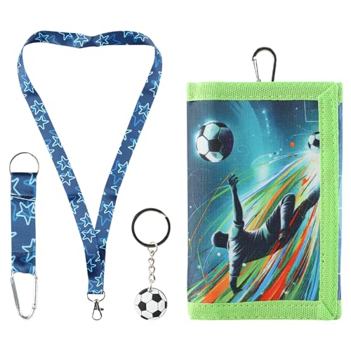 GmeDhc Barn plånbok, pojke flicka tecknad plånbok, myntväska för barn med karbinhake, halsrem och nyckelring, för barn tonåring present, Fotboll B, Trendig