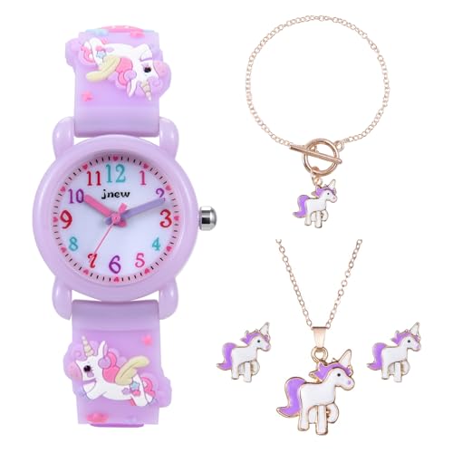 HMJIA Analoga klockor för pojkar, Pojke och flicka klocka,30m barn vattentät klocka,Undervisning klockor,Tecknad klocka med silikonrem, Enhörning Lavendel Set