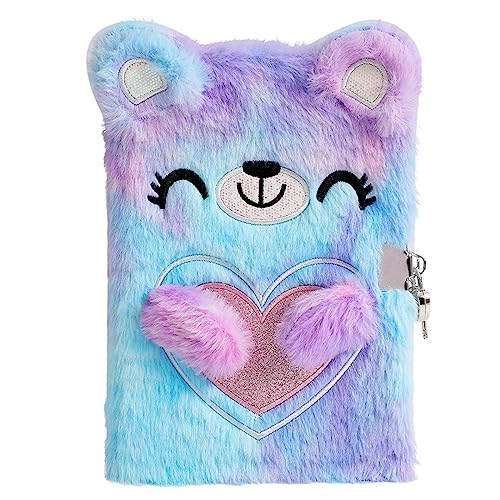 PESLNG Flicka dagbok med hänglås | hemlig anteckningsbok, flickpresent | uppmuntrar skrift, perfekt för skola och speciella tillfällen (tecknad björn, flerfärgad), Material: Polyester