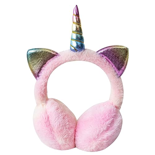 EULAPGOE Enhörning vinter öronskydd, öronskydd flicka enhörning plysch öronskydd huvudbonader söt tecknad öronvärmare för kvinnor flickor, svart, L
