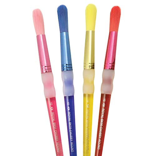 Royal & Langnickel – runda borstset i nylon för barn, 4 målarpenslar i storlek 10, flerfärgad, med rundade borst och mjuk touch-gummibeläggning för små detaljer och fin teckning