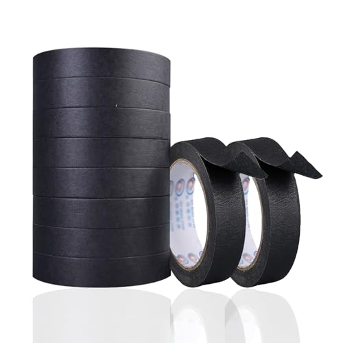 Masking Tape målarband skrivbar dekortejp självhäftande remsor dekorativa maskeringstejp 10 rullar 15 mm x 20 m, för hantverk scrapbooking teckning konsttillbehör för barn (svart)