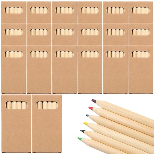 HENGBIRD 20 Förpackningar Färgpennor Set Med 6 Per Pack - Röd, Gul, Brun, Grön, Blå, Svart Mini Träpennor i Kartongfodral för Barn Konst Teckning Skissa