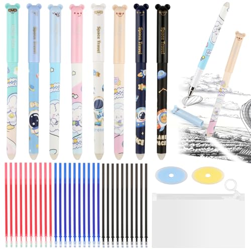 JIANGZHIB raderbar kulspetspenna, 8 stycken gelpennor, gelpenna med 30 påfyllningar och 2 suddgummin, 0,5 mm gelpennor, raderbara för barn och vuxna, skissa, teckning