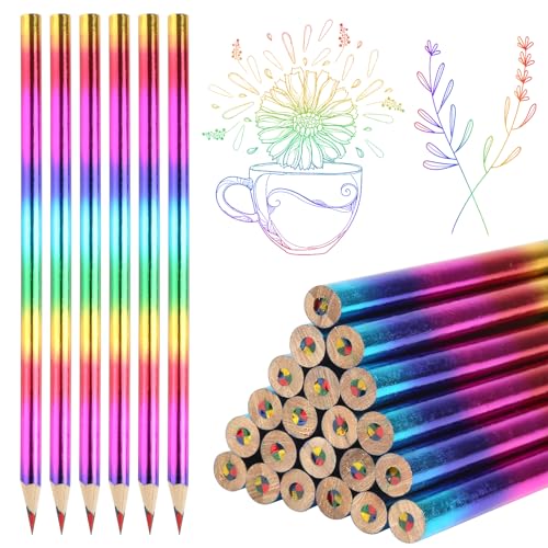 AILUYA 24 stycken regnbågspennor, 4-i-1 regnbågspennor barn, träregnbågspenna färgpennor, färgpennor barn för konst teckning skissa färger barns födelsedag gästpresenter