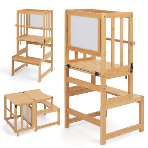 COSYLAND Montessoriantornet för barn 3-i-1 med whiteboard – montessorianskt torn som kan omvandlas till soffbord för teckning och aktiviteter (klassisk natur)