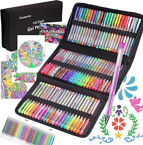 Bajotien 145-pack glittergelpennor set 72 unika färger och 72 påfyllningar med 1 målarbok för barn vuxna målarböcker teckning klottring hantverk scrapbooking