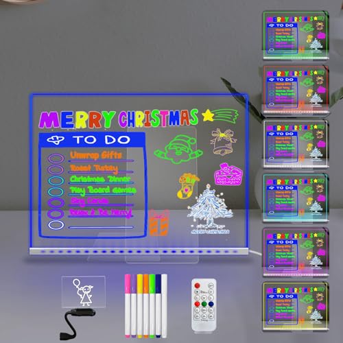 Masshomi 15 x 11 tum 7 färgskiftningar LED glödande meddelande akryl skrivtavla dimmer fjärrkontroll timer plug in 7 färgmarkörer barn teckning målning sänglampa memo meny att göra-lista