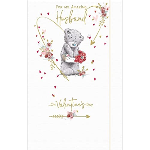 Me To You Tatty Teddy lyxigt alla hjärtans dagskort, make björn med bukett och kuvert, 18 x 28 cm – officiell samling