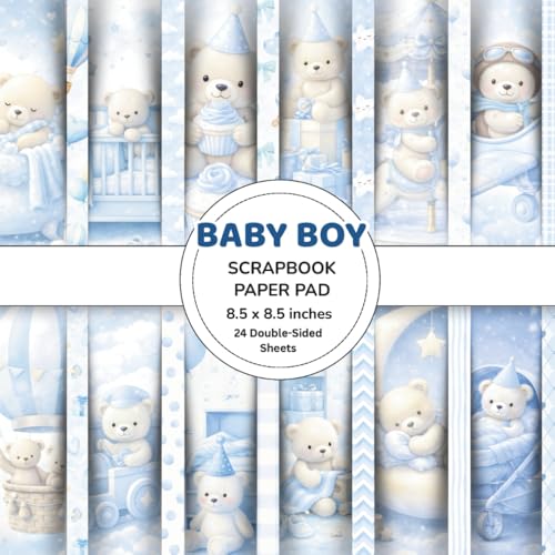 Baby Boy Scrapbook Paper Pad: 24 Double-Sided Nursery Designs with Teddy Bears, Soft Blue Patterns & Cute Baby Themes for Paper Crafts