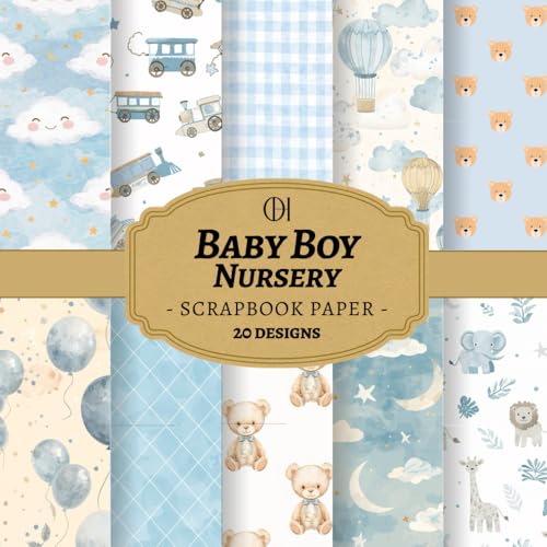 Baby Boy Nursery Scrapbook Paper: 20 Double-Sided Sweet Nursery Designs Featuring Teddy Bears, Clouds, Stars & Soft Blue Patterns for Scrapbooking, ... Card Making, Collage & DIY Crafts (Craft Pad)