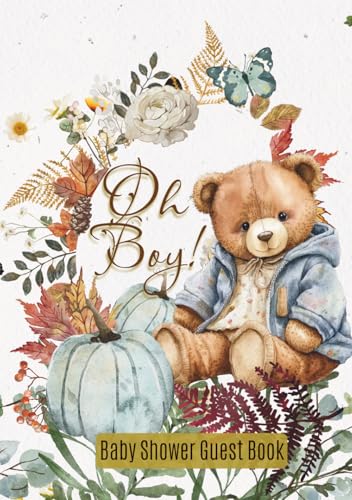 Fall Baby Shower Guest Book For Boy: Oh Boy! Autumn Themed -Party Idea With Very Cute Teddy Bear In Blue; Orange Colors and Decorations- Little ... Register List to Sign In & Keepsake Memories