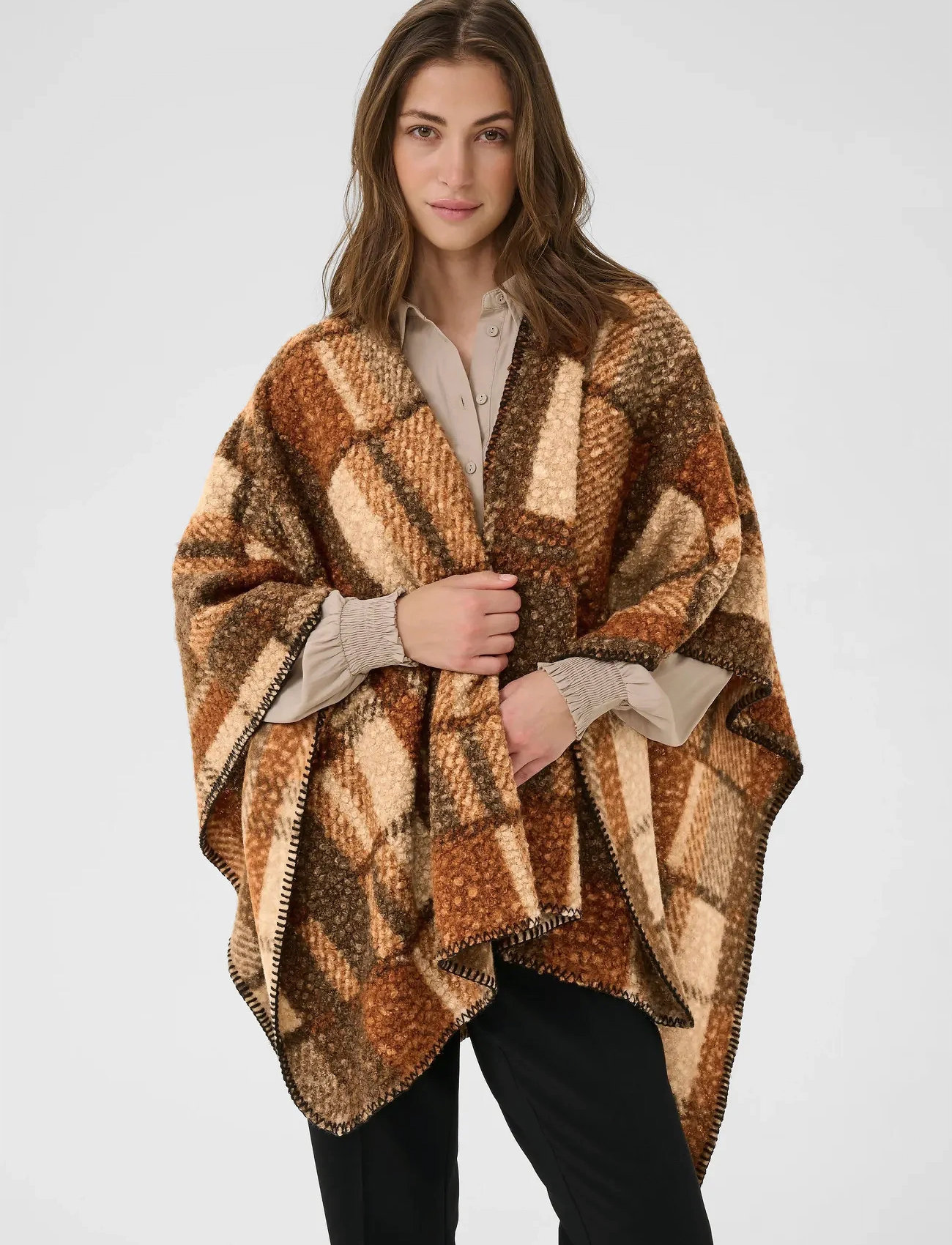 Cream Crblye Teddy Cape - Brown - ONE SIZE