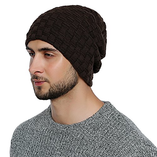 DonDon herr vinter lång beanie mycket varma och mjuka mössa med teddy-fleece brun