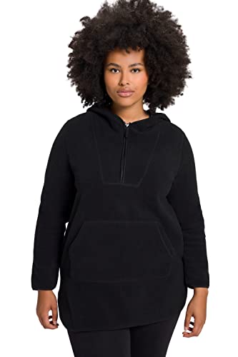 Ulla popken dam stora storlekar överdimensionerade plus storlek lång -Teddy-fleecetröja, huva, dragkedja, långärmad