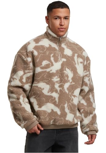 Urban Classics Herrtröja överdimensionerat mönster teddy troyer, bred fleecetröja med hög krage och halv dragkedja, storlekar S – 5XL, Sandvirvel, XXL