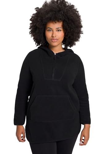 Ulla popken dam lång -Teddy-fleecetröja, huva, dragkedja, långärmad huvtröja, svart, 42-44