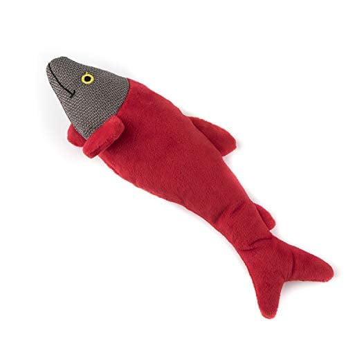 Glory Dog Teddy - Storlek 29 cm - Teddy Fish Leed - Hundleksak - Ljudleksak - Mjuk konsistens - Slitstarkt och slitstarkt material - Röd färg