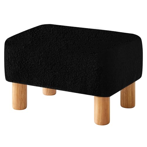 YMYNY Fotpall, rektangel puff ottoman med stabila träben, för soffa, skrivbord, modern teddy fleece material mjuk vadderad säte, byt skopall för vardagsrum, sovrum, 40 × 29 × 25 cm svart HBD030B