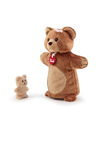 Trudi Puppets 29858 handdocka teddy björn med baby ca 26 cm (storlek S), mjuk leksak av högkvalitativa material, kärleksfulla detaljer, mycket fluffig, tvättbar, gosig leksak och docka för barn, brun