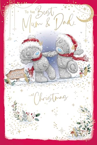 Me To You Tatty Teddy julkort till den bästa mamman och pappan, tatuerad nalle i snön, 6x9 ins – officiell samling